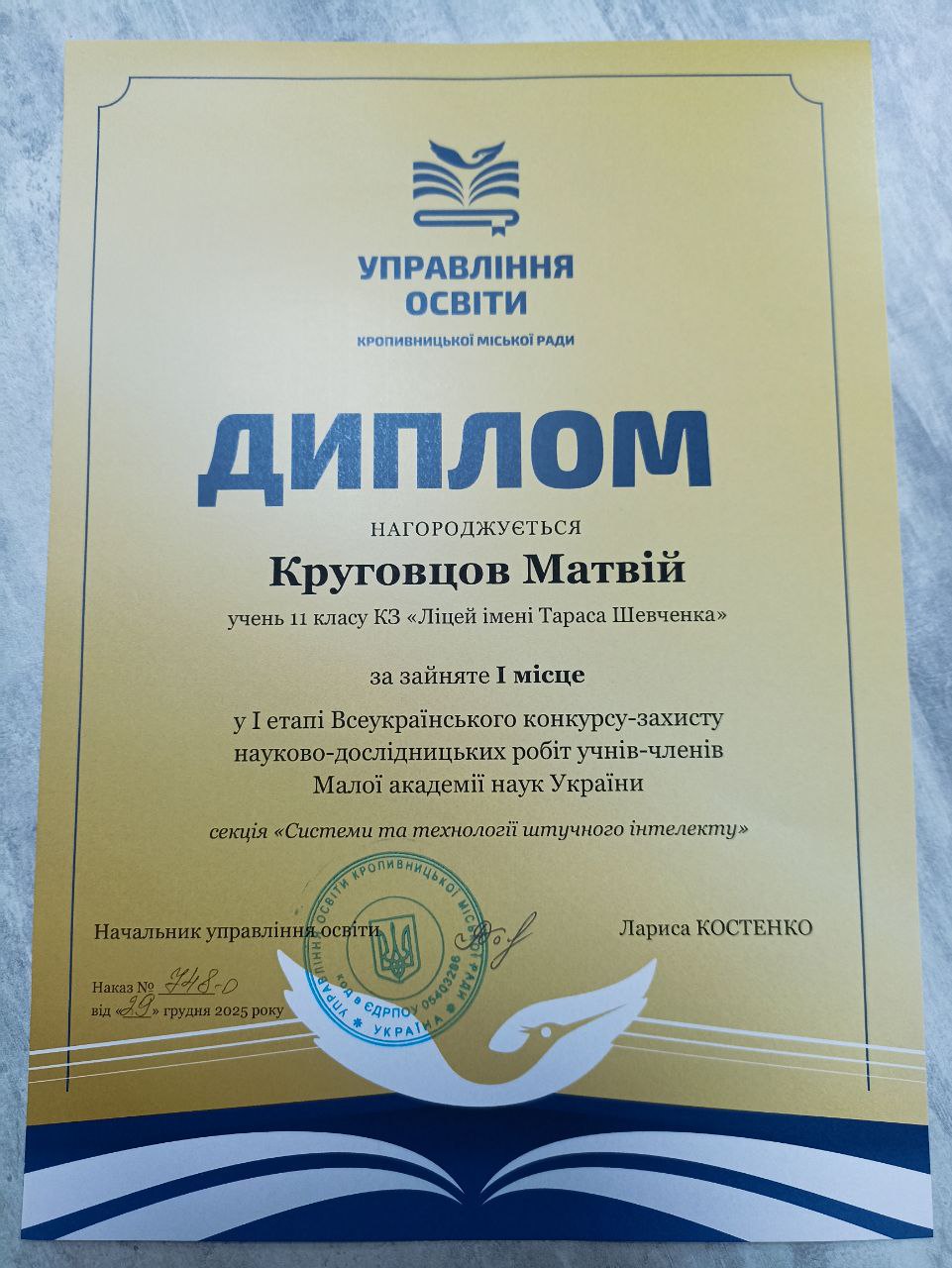 Ваша перемога — це результат наполегливої праці, інтелектуальної сміливості, дослідницької допитливості та щирого захоплення наукою. Ви довели, що молодь нашого краю — розумна, креативна й здатна творити майбутнє України вже сьогодні.