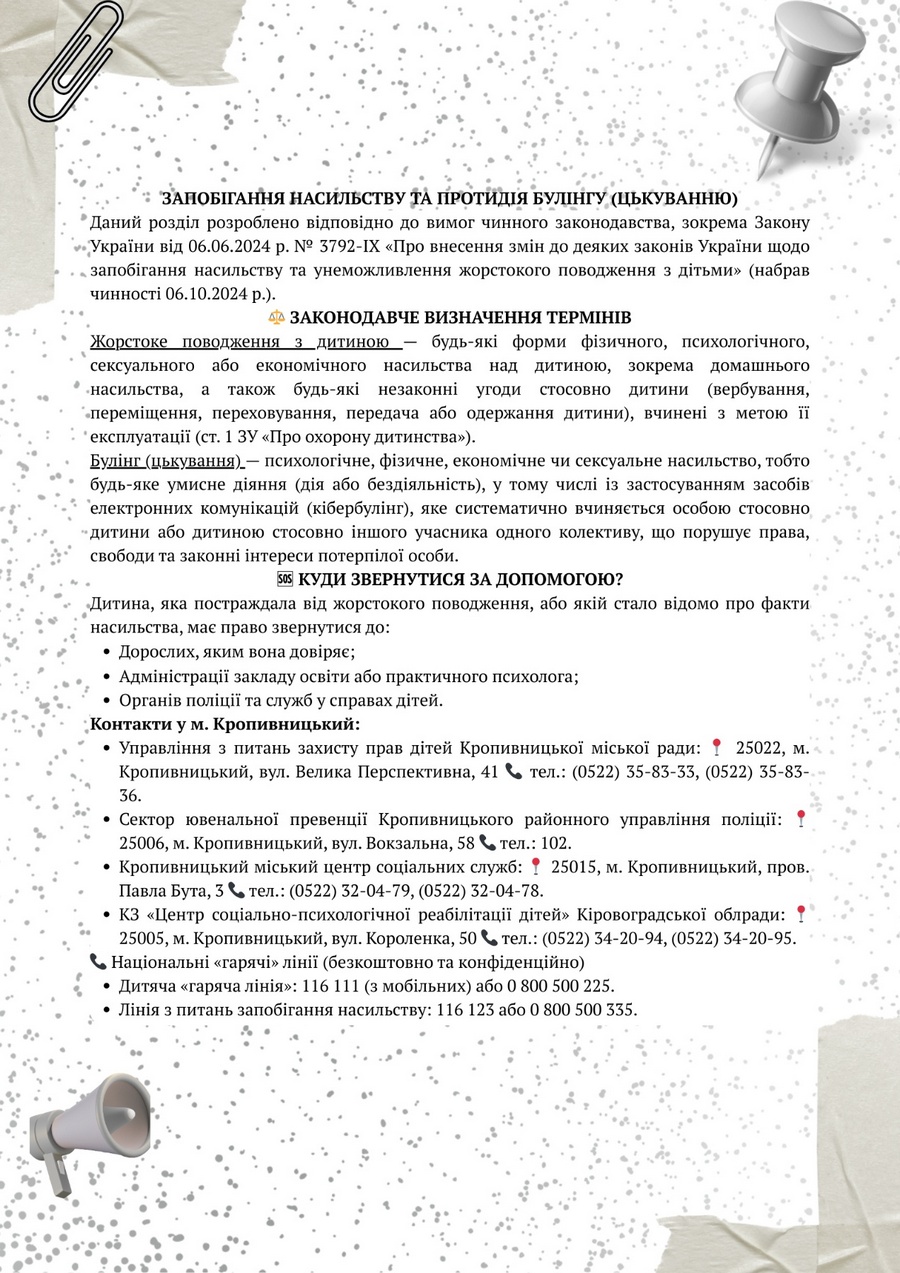 - Управління з питань захисту прав дітей Кропивницької міської ради за телефоном (0522) 35 83 36 або надсилати повідомлення на електронну пошту: