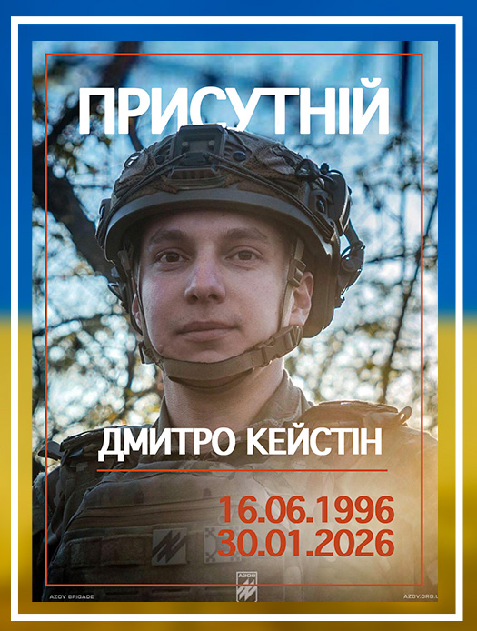 Старший солдат Дмитро Кейстін загинув 30 січня 2026 року у районі населеного пункту Кучерів Яр Покровського району Донецької області, до останнього залишившись вірним військовій присязі, Україні та своїм побратимам. Йому було лише 29 років…
