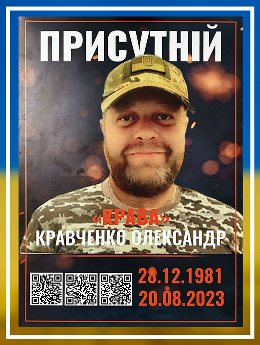20 серпня 2023 року Олександр перестав виходити на зв'язок. Про те, що цього дня він загинув, ми дізналися через три дні, – розповідають близькі Олександра. Серце водія-електрика стрілецького взводу Олександра Кравченка перестало битися в районі населеного пункту Одрадокам'янка Бериславського району Херсонської області.