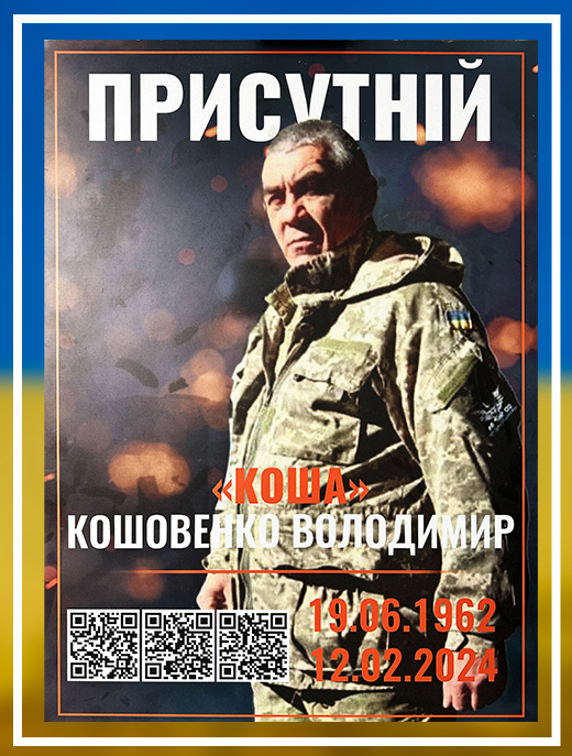 Володимир Кошовенко назавжди залишиться у спогадах рідних і близьких доброю та порядною людиною, надійним побратимом, щирим другом. Він був міцним плечем для родини, люблячим сином, батьком та братом.